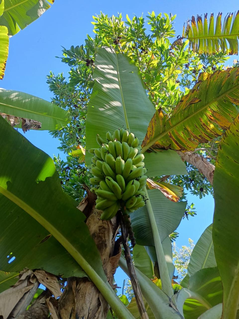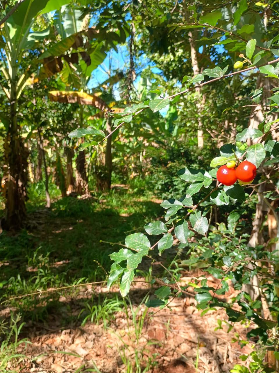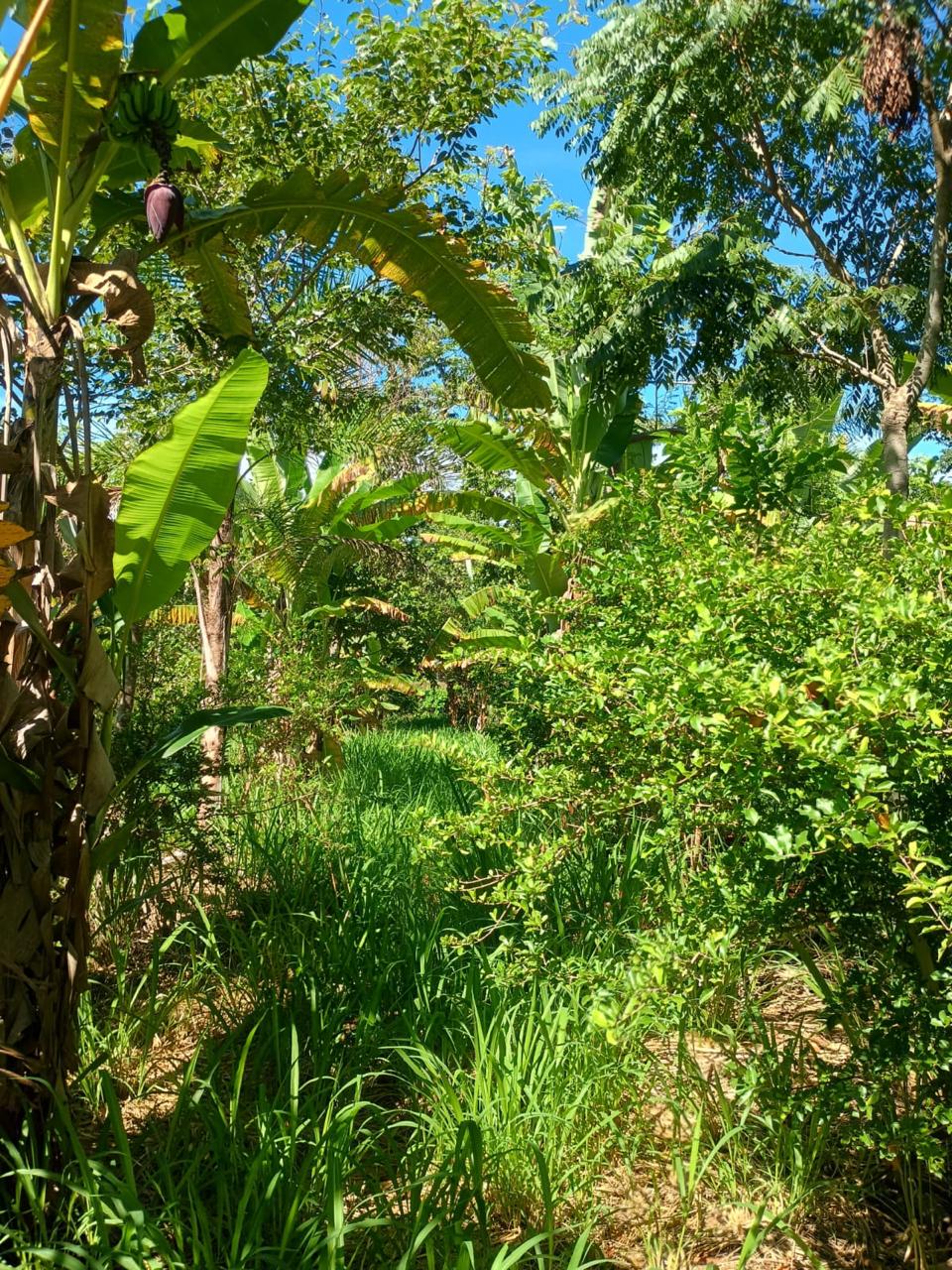 Hoje, o espaço funciona como um verdadeiro mosaico de diversidade vegetal. Entre as mais de 50 espécies cultivadas estão árvores nativas do Cerrado, frutíferas e culturas agrícolas de ciclo mais curto. Espécies como baru, jatobá, ipês e copaíba compartilham espaço com frutas como manga, goiaba, acerola e pitanga, além de hortaliças e cultivos como milho, feijão, abóbora e batata-doce, que ocupam o sistema enquanto há maior incidência de sol nos primeiros estágios da floresta.